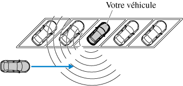 Le système d'alerte de circulation transversale à l'arrière (RCTA) détecte les véhicules qui s'approchent par les côtés gauche et droit du véhicule lorsque le véhicule fait marche arrière à partir d'un espace de stationnement, et avertit le conducteur de danger possible en utilisant les voyants de surveillance des angles morts (BSM) et l'avertisseur sonore.