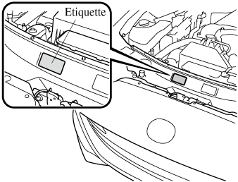 Les spécifications du réfrigérant sont indiquées sur une étiquette fixée à l'intérieur du compartiment moteur. Vérifier l'étiquette avant de faire le plein de réfrigérant. Si le mauvais type de réfrigérant est utilisé, cela peut entraîner une anomalie grave du système de commande de température.