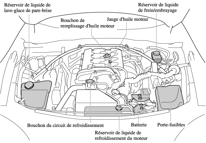 Vue générale du compartiment moteur
