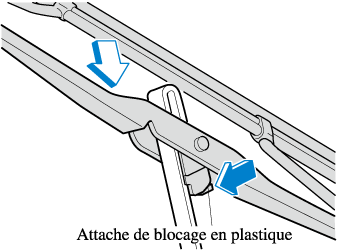 Relever le bras d'essuie-glace et tourner l'ensemble du balai pour mettre en évidence l'attache de blocage en plastique.