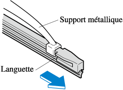 Saisir l'extrémité du caoutchouc de balai et tirer jusqu'à ce que les languettes soient dégagées du support métallique.