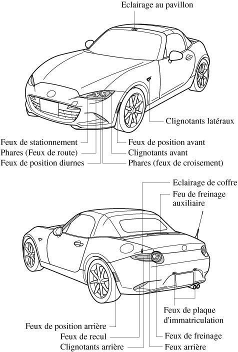 Pour remplacer l'ampoule, s'adresser à un concessionnaire agréé Mazda.