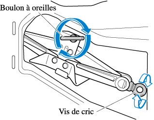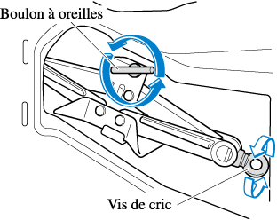 Si le cric n'est pas complètement fixé, il risquerait de cliqueter pendant la conduite. Veiller à ce que la vis du cric soit suffisamment serrée.