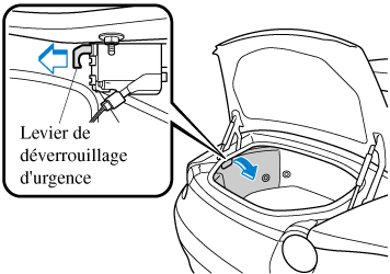 Retirer partiellement le couvercle de l'intérieur du coffre, puis tirer sur le levier de déverrouillage d'urgence.