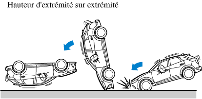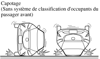 L'illustration suivante est un exemple d'un accident qui ne pas être détecté comme un capotage. Par conséquent, il est possible que les dispositifs de prétension de ceinture de sécurité et rideaux de sécurité avant ne se déploient pas.
