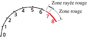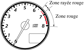 Lorsque l'aiguille du compte-tours entre dans la ZONE RAYÉE ROUGE, cela indique au conducteur qu'il faut changer de vitesse avant d'arriver à la ZONE ROUGE.