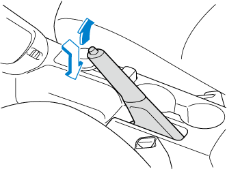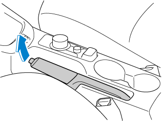 Appuyer sur la pédale de frein, puis tirer le levier de frein de stationnement vers le haut et appuyer sur le bouton de dégagement. Tout en tenant le bouton, abaisser le levier du frein de stationnement complètement jusqu'à ce qu'il soit en position relâchée.