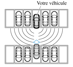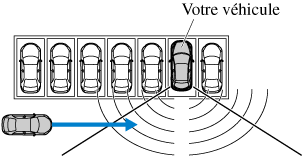 La zone de détection du capteur radar (arrière) est obstruée par un mur voisin ou un véhicule en stationnement. (Faire marche arrière avec le véhicule jusqu'à une position où la zone de détection du capteur radar n'est plus obstruée.)