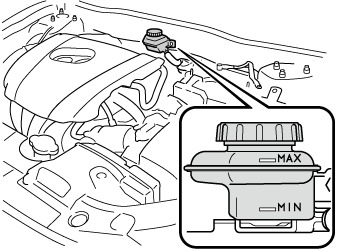 Vérifier périodiquement le niveau du liquide dans le réservoir. Le niveau doit être gardé entre les repères MAX et MIN.