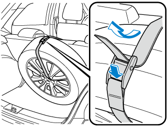 Tirer l'extrémité de la courroie pour bloquer le pneu à plat.