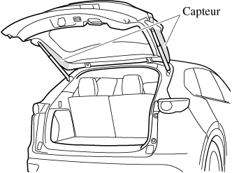 Des capteurs sont installés des deux cotés du hayon électrique. Faites bien attention de ne pas égratigner ou endommager les capteurs avec des objets pointus. Cela pourrait empêcher le hayon électrique de s'ouvrir/se fermer automatiquement. Par ailleurs, si le capteur est endommagé pendant la fermeture automatique du hayon, le système s'arrête.