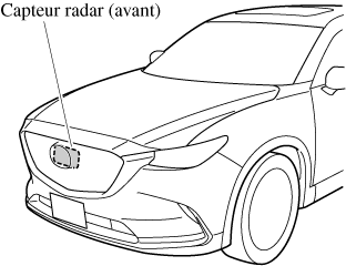 Pour les réparations, les remplacements ou les travaux de peinture autour du capteur radar (avant), consulter un concessionnaire agréé Mazda.