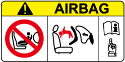 Les véhicules équipés d'un coussin d'air côté passager avant porte l'étiquette d'avertissement suivante. L'étiquette avertit contre l'utilisation de dispositifs de sécurité pour enfants faisant face vers l'arrière sur le siège avant en tout temps.