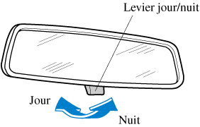 Pousser le levier jour/nuit vers l'avant pour une conduite de jour. Le tirer vers l'arrière pour réduire l'éblouissement causé par les phares des voitures roulant derrière.