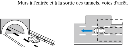 Dans les conditions suivantes, les capteurs radar (arrière) peuvent ne pas détecter des objets cibles ou il peut être difficile de les détecter.
