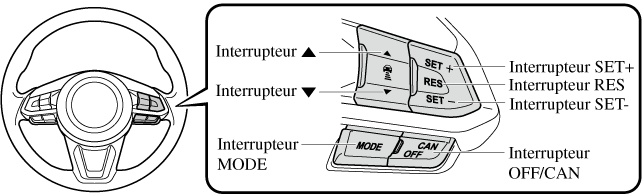 à la vitesse désirée. Si l'interrupteur ne peut pas être actionné, le système revient à la vitesse réglée lorsque vous levez le pied de la pédale d'accélérateur.