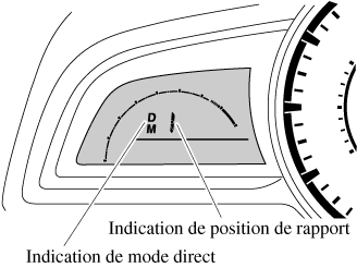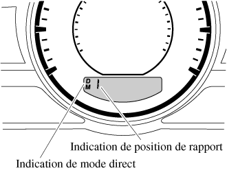Tandis qu'en mode direct, les indications D et M s'allument et la position de la vitesse utilisée est indiquée.