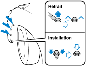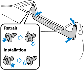 Tirer la section centrale de chaque pièce de retenue en plastique et retirer la pièce de retenue.