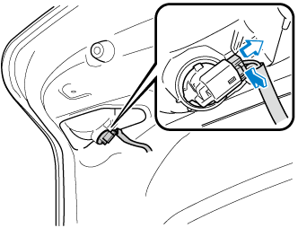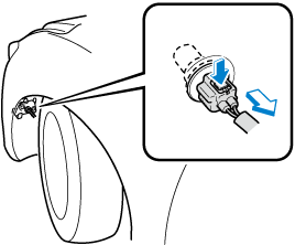Débrancher le connecteur électrique de l'ampoule en appuyant sur la languette du connecteur avec un doigt et en tirant le connecteur.