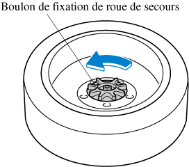 Tourner le boulon de fixation de la roue de secours dans le sens contraire des aiguilles d'une montre.