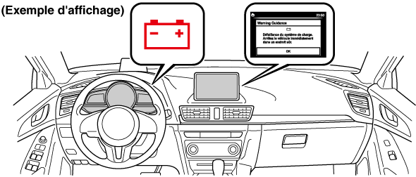 Si un message s'affiche dans l'affichage central (audio de type B), prendre les mesures appropriées (calmement) selon le message affiché.