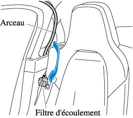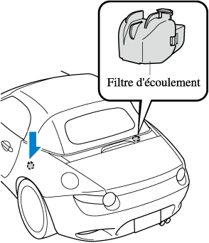 Dans le cas où des feuilles ou d'autres matières bloqueraient le filtre d'écoulement, de l'eau pourrait pénétrer dans le véhicule.