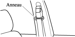 Le fait d'utiliser une ceinture de sécurité endommagée est dangereux. Un accident risque d'endommager la toile de toute ceinture de sécurité utilisée. Une ceinture de sécurité endommagée ne peut pas fournir une protection adéquate en cas de collision. Faire inspecter, par un concessionnaire agréé Mazda, tous les systèmes des ceintures de sécurité utilisées lors d'un accident avant de les utiliser de nouveau.