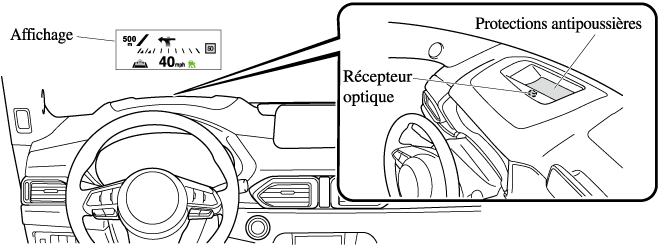 Ne pas placer d'objet au-dessus d'affichage de conduite active ni appliquer d'autocollants sur la protection antipoussières ou le récepteur optique afin d'éviter les interférences.