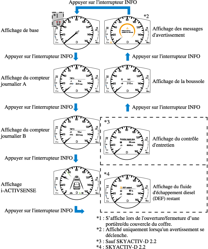 Affichage du fluide d'échappement diesel (DEF) restant et de la distance de conduite maximale (SKYACTIV-D 2.2)