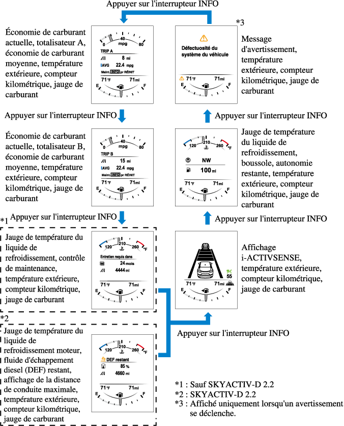 Affichage du fluide d'échappement diesel (DEF) restant et de la distance de conduite maximale (SKYACTIV-D 2.2)
