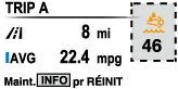 Si la quantité restante de DEF est faible ou si le système de réduction catalytique sélective (SCR) présente un problème et que la distance de conduite restante est inférieure au maximum, l'indication de distance restante avant que le réservoir ne soit vide est affichée en permanence.