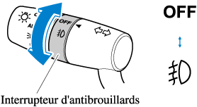 Les antibrouillards s'allument lorsque l'interrupteur des antibrouillards est tourné en position