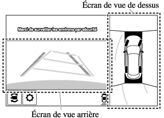 Affiche une image de la zone autour du véhicule et de l'arrière du véhicule.