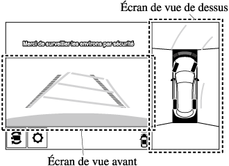 Affiche une image de la zone autour du véhicule et de l'avant du véhicule.