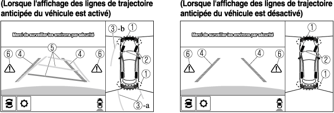 Il est possible de modifier le réglage de manière à masquer les lignes de trajectoire anticipée du véhicule.