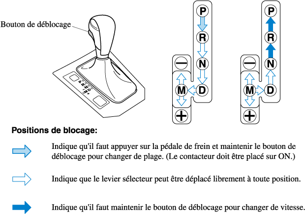 La Sport AT possède une option que ne possède pas la boîte de vitesses automatique traditionnelle qui donne au conducteur l'option de pouvoir choisir lui-même chaque rapport au lieu de laisser entièrement le choix du changement de vitesses à la boîte de vitesses. Même si l'on a l'intention d'utiliser les fonctions de boîte de vitesses automatique comme boîte automatique traditionnelle, il faut aussi bien être conscient que l'on peut passer par mégarde en mode de changement de vitesses manuel et qu'un rapport inadéquat pourra alors être conservé lorsque la vitesse du véhicule augmente. Si l'on remarque que le régime du moteur augmente ou que le moteur s'emballe, vérifier si l'on n'est pas passé par mégarde en mode de sélection manuelle des rapports (Rechercher).