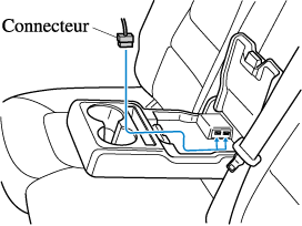 Faire passer le cordon à travers la rainure dans la boîte d'accoudoirs et insérer le connecteur USB dans l'un des ports d'alimentation USB.
