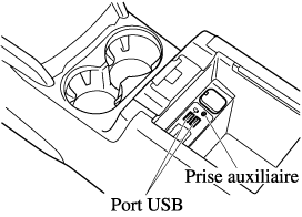 Lorsque vous connectez un appareil à la prise auxiliaire ou au port USB, du bruit peut se produire selon l'appareil connecté. Si l'appareil est connecté à la prise des accessoires du véhicule, le bruit peut être réduit en le débranchant de la prise des accessoires.