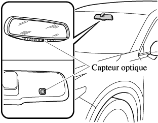 Le rétroviseur à anti-éblouissement automatique réduit automatiquement l'éblouissement causé par les phares des véhicules roulant derrière lorsque le contacteur est mis sur ON.
