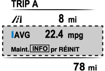 La consommation moyenne de carburant est calculée toutes les minutes à partir de la distance totale parcourue sur le compteur journalier et la consommation totale de carburant, et l'économie moyenne de carburant est affichée soit pour le TRIP A, soit pour le TRIP B.