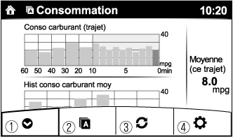 Les informations relatives à la consommation de carburant s'affichent en actionnant chaque icône dans l'affichage.