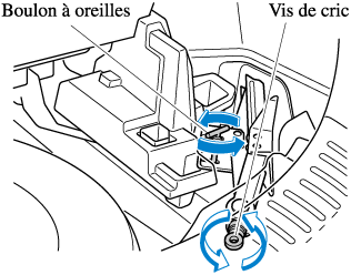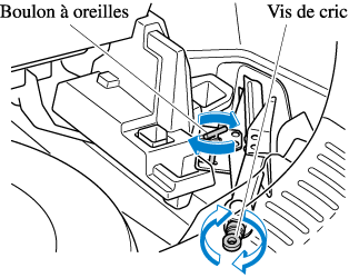 Si le cric n'est pas complètement fixé, il risquerait de cliqueter pendant la conduite. Veiller à ce que la vis du cric soit suffisamment serrée.