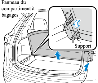 En insérant le tapis du compartiment à bagages, soutenir le panneau du compartiment à bagages d'une main de façon à ce qu'il ne se détache pas des supports.
