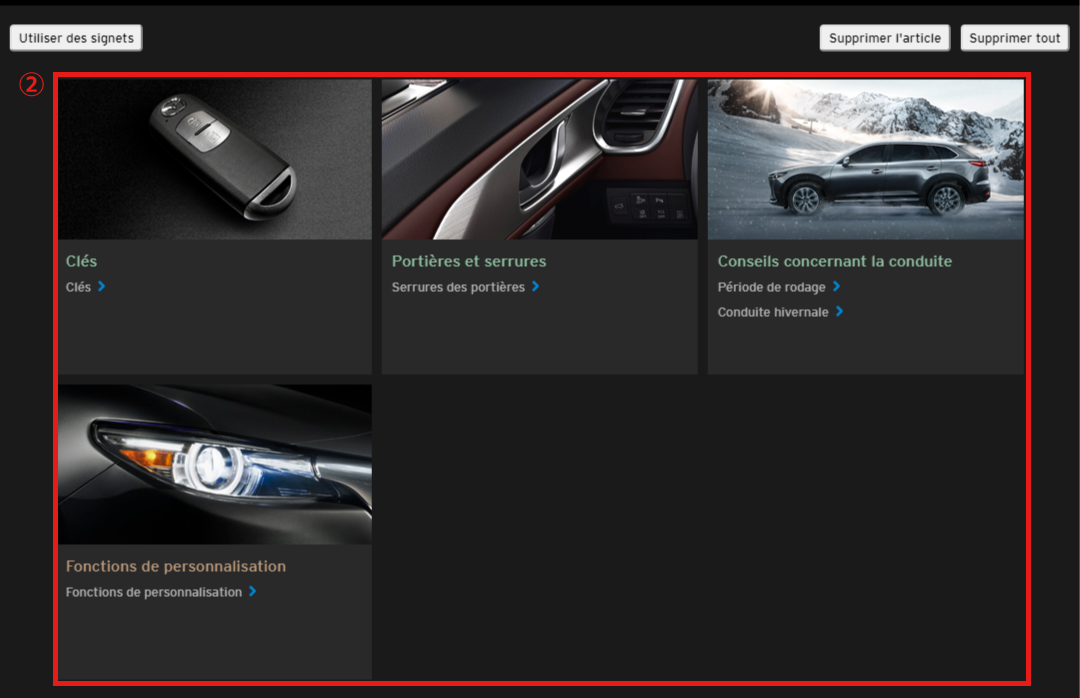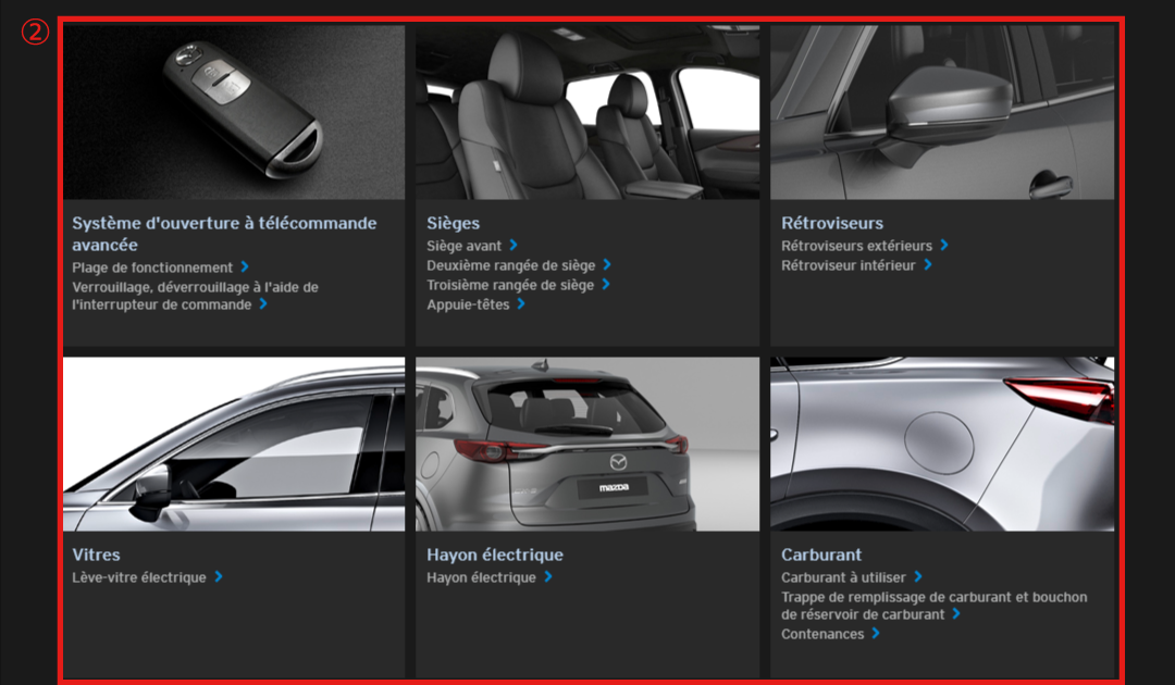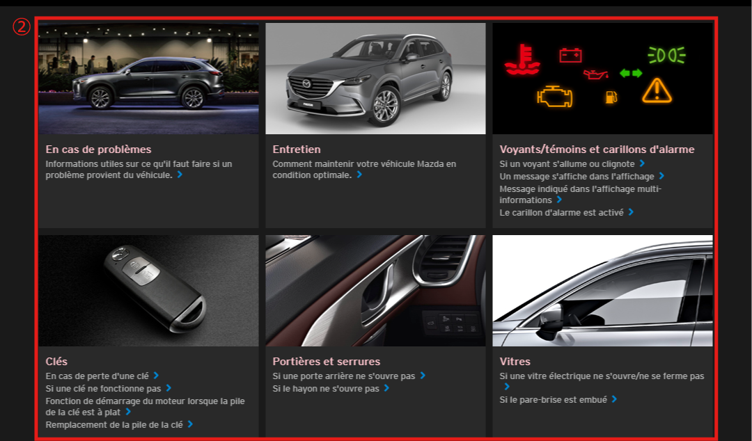 Vous pouvez rechercher les informations dont vous avez besoin à partir du site Mazda Connect.