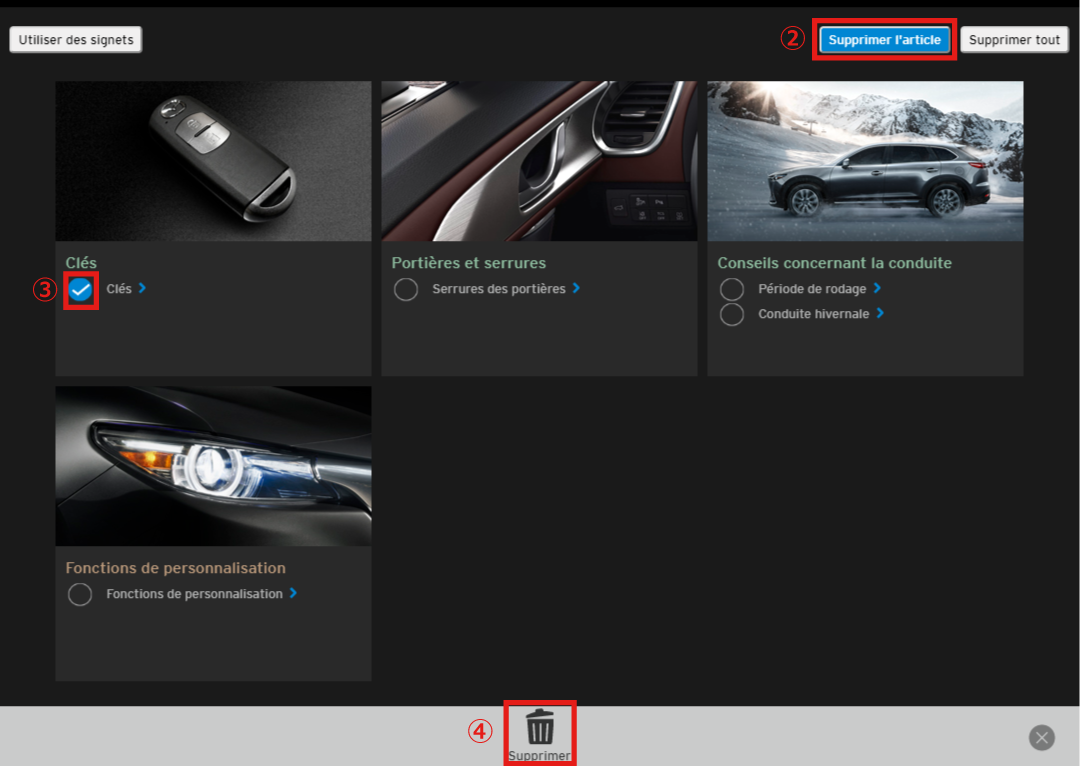 【Lors de la sélection et de la suppression d'éléments】