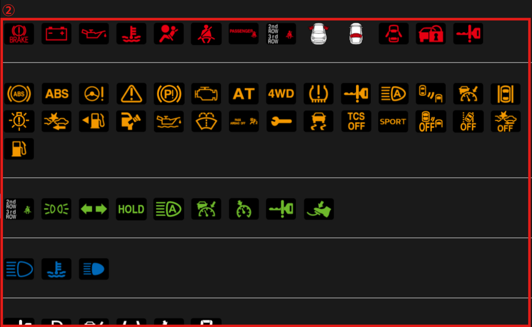 Sélectionnez la liste des voyants/témoins lumineux dans le menu.