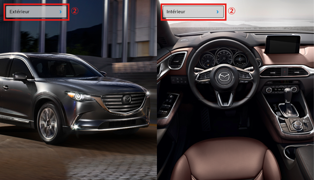 Vous pouvez basculer entre les images intérieures et extérieures du véhicule.
