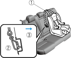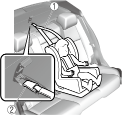 S'assurer que les ceintures de sécurité ou autres objets étrangers ne se trouvent pas près ou sur le système de dispositif de sécurité pour enfants de type ISOFIX/LATCH*1:
