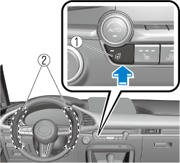 • Si l'interrupteur de volant chauffant est enfoncé en mode automatique, le volant chauffant passe en mode manuel. Pour revenir au mode automatique, appuyer sur l'interrupteur AUTO.