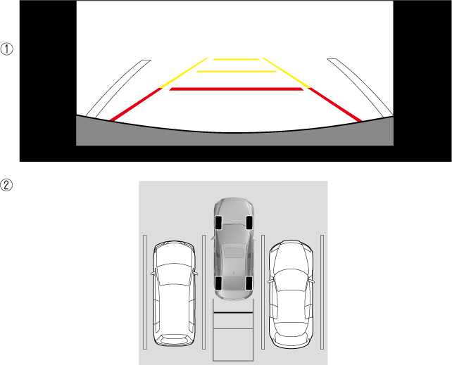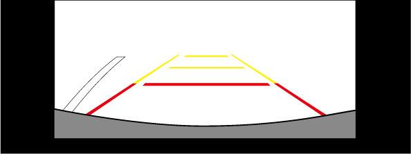 Comme il peut y avoir une différence entre l'image affichée, comme indiqué ci-dessous, et les conditions réelles du stationnement, s'assurer toujours de la sécurité à l'arrière du véhicule et dans la zone environnante directement avec les yeux.